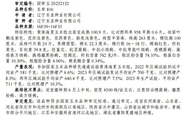 近日,農業農村部發布公告,共審定通過水稻品種425個、玉米品種764個、棉花品種31個、大豆品種42個、小麥品種5個。東亞種業3個玉米品種通過國家審定。
