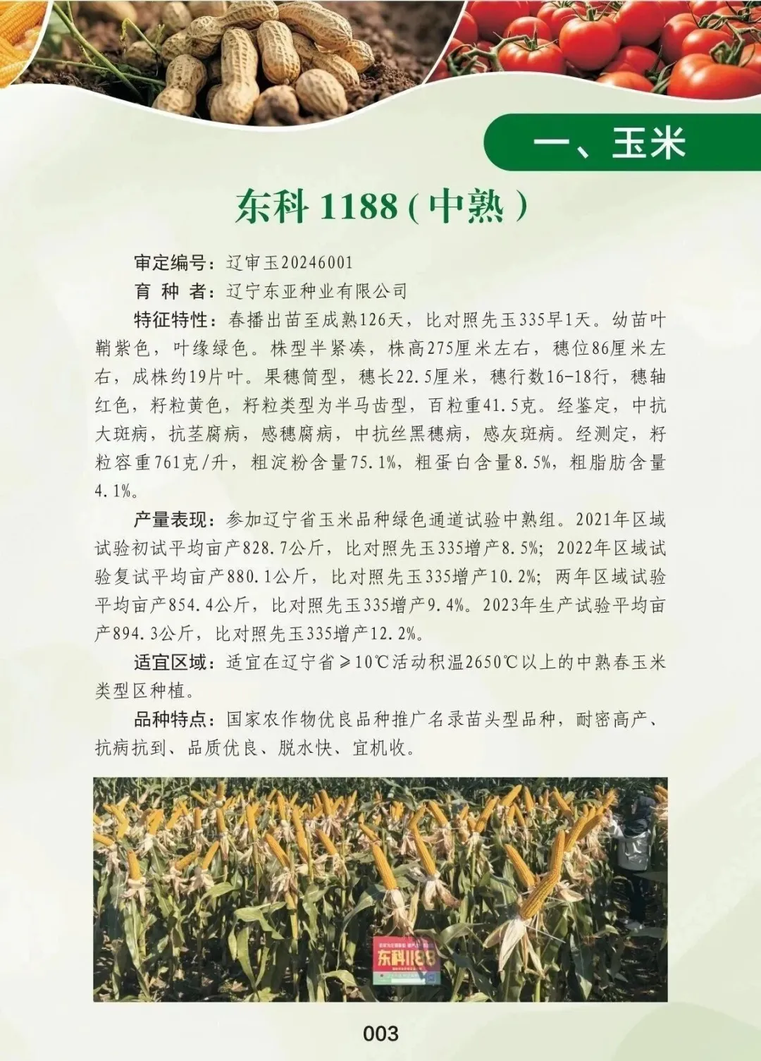 東科1188是遼寧東亞種業有限公司自主研發的玉米品種,已入選2025年國家農作物(玉米)苗頭型品種!